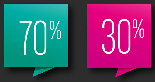Jim Rohn, doanh nhân, tác giả và diễn giả tạo động lực, sử dụng quy tắc 70/30 làm kế hoạch chi tiêu, tiết kiệm, đầu tư và hiến tặng. Đối với hầu hết mọi người, khó khăn là học cách sống 70 phần trăm thu nhập của họ sau thuế, bao gồm cả chi tiêu cho tất cả các nhu yếu phẩm và xa xỉ phẩm. 30 phần trăm còn lại sau đó được chia đều thành 3 phần phân bổ cho đầu tư, tiết kiệm và từ thiện.